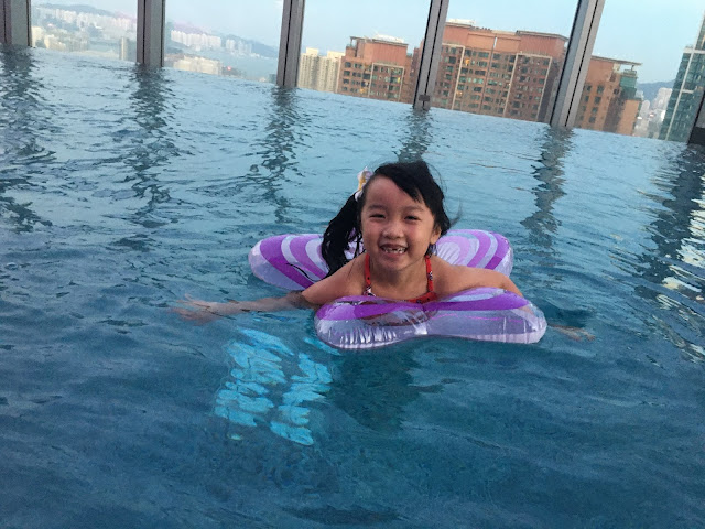 而住在W Hotel, 不能錯過的, 是這個位處76樓, 全港最高的室外泳池. 小晴晴愛游泳, 這次我們就上來游了兩次. 但要提提大家, 限聚令關係, 要游, 就要趁早, 或者留待晚間.